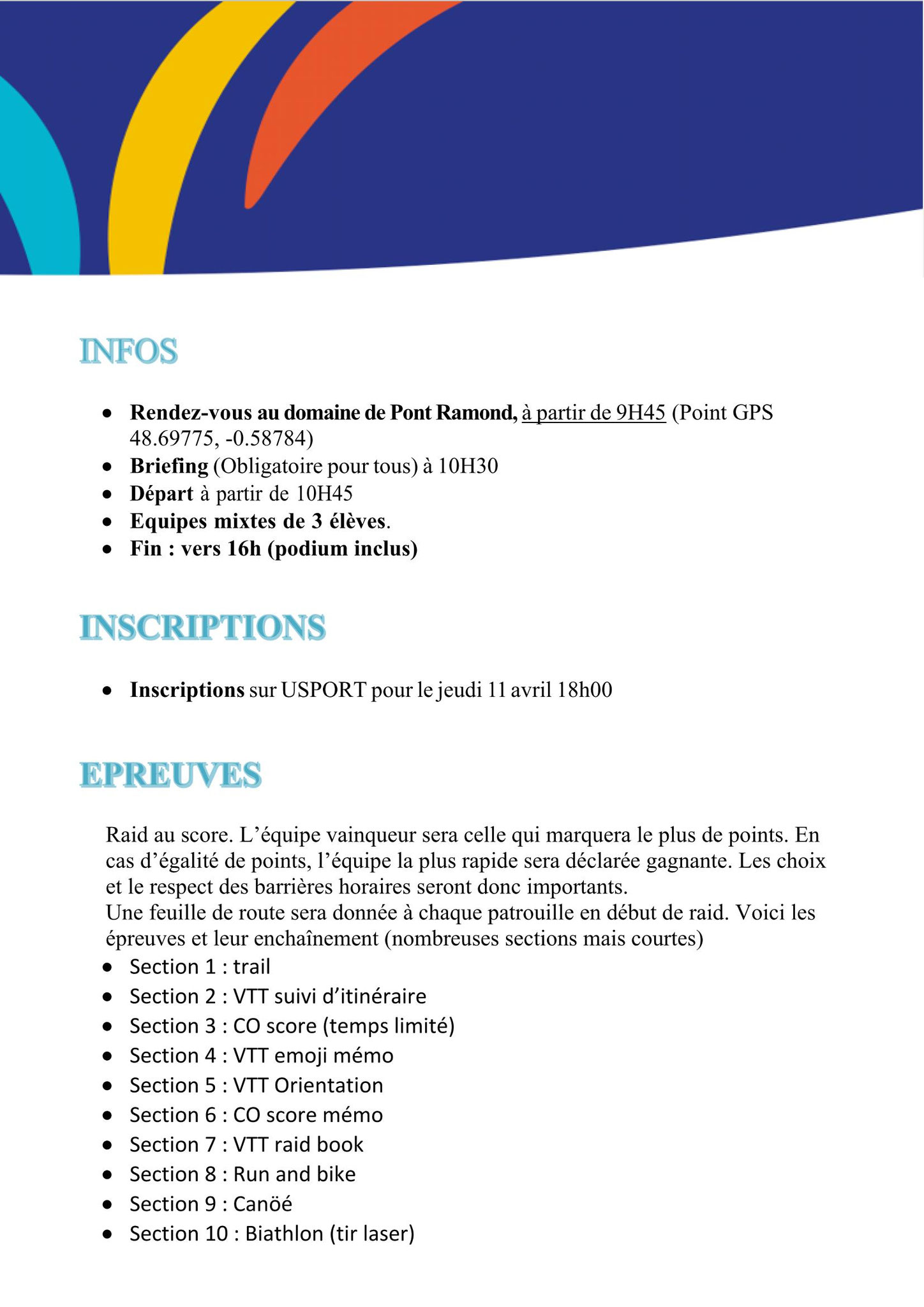 Organisé par Tinchebray (61), le RAID se déroulera près de Flers au domaine de pont Ramond.